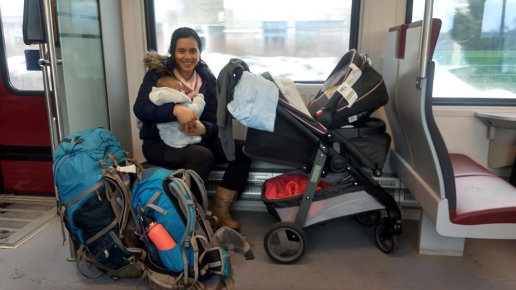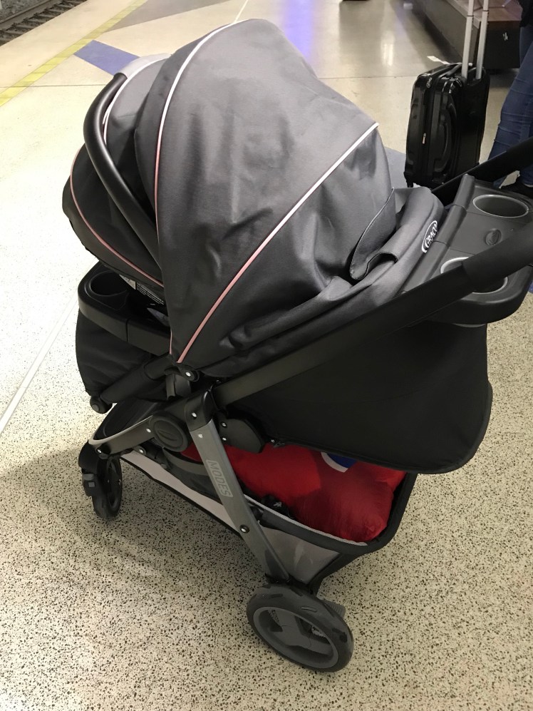 Waiting at the platform was quite cold. I’m glad we had the Graco stroller. Arthur was sleeping and he was protected from the cold. The car seat had a very big retractable hood and the stroller also had a large retractable hood. The combo creates a perfect cocoon.
