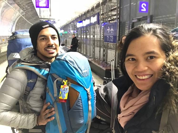 We didn’t have to wait long for the train to arrive. We got on for a 32-minute ride to Helsinki city center main train station. About 5 minutes into the ride, Arthur woke up and started whimpering. We opened up the hood and talked to him for a while. But he wanted to get out of the car seat. So I took him out and he sat on my lap for the remaining journey. He was quiet throughout the ride. I think he liked people-watching. Seeing different people getting on and off the train. Some were wearing quite colorful outfits. Some even gave him smiles.