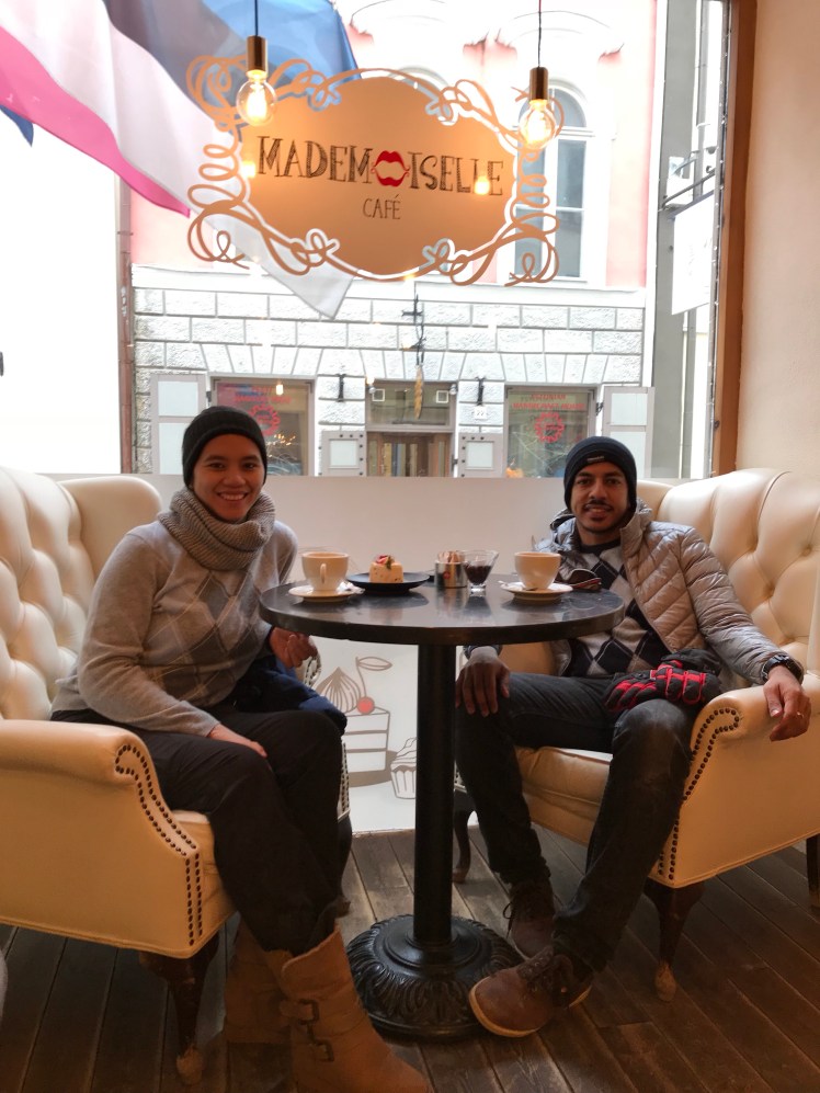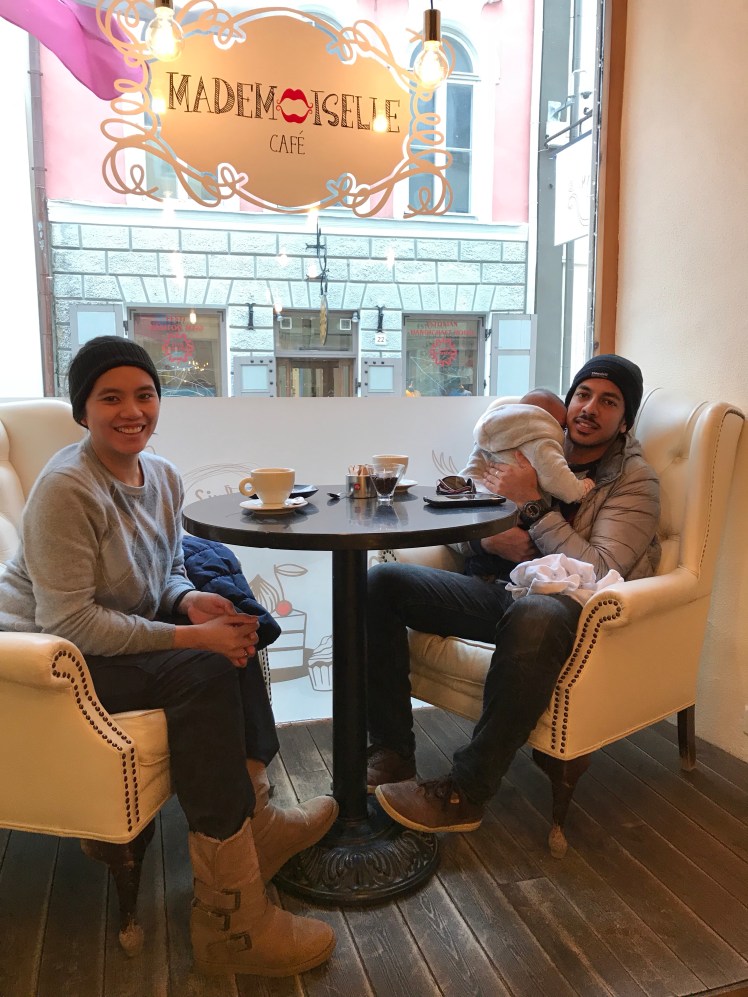 After a couple of stops at various viewpoints, and a walk up and down the small streets in old town, we stopped for a coffee break at Mademoiselle on Pikk street. We got Vana Tallinn coffee and a small dessert. Arthur was still asleep when we got there. But we were in no rush. We sat and talked and slowly enjoyed the cup of coffee. We sat by the window so we were able to people-watch from time to time, but there were not that many people outside.