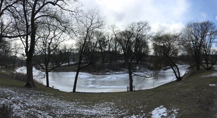 The park by the monument was so beautiful. The frozen city canal added to the haunting feeling of the park.