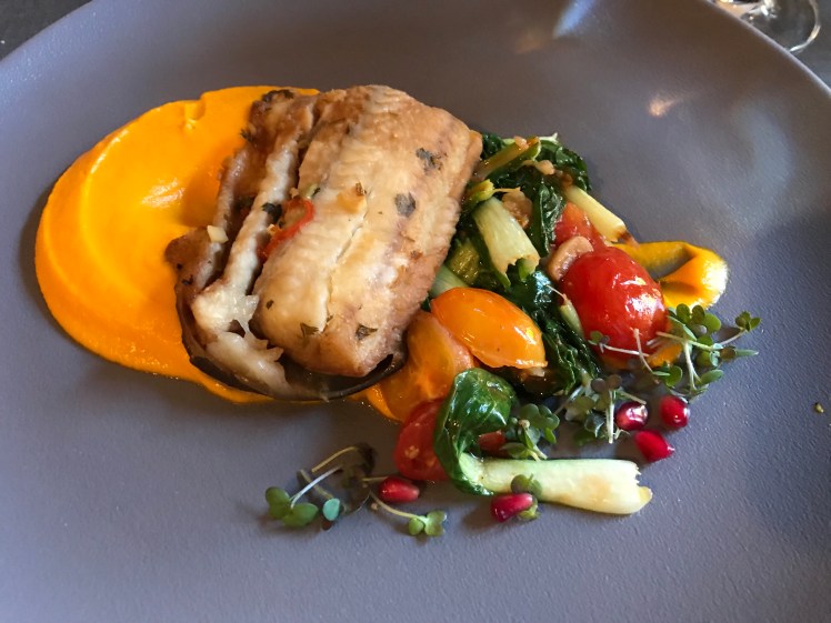 And the food was delicious! We had scallop as an appetizer with dry apple wine. I had the catfish for my main while Sean had the steak with scallop wrapped inside. Soooo good.