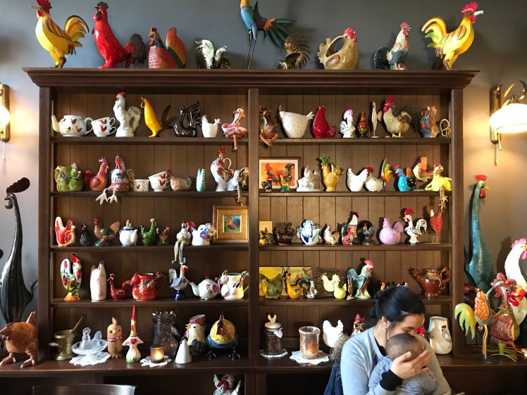 We were only a block away from the Art Nouveau streets when Arthur woke up crying again. We decided to head to the nearest restaurant. It turned out to be a restaurant called The Flying Frog.