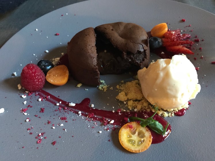 I was holding Arthur who was asleep when the dessert arrived. Having a sleeping baby couldn’t stop us from enjoying good food. We just had to improvise.