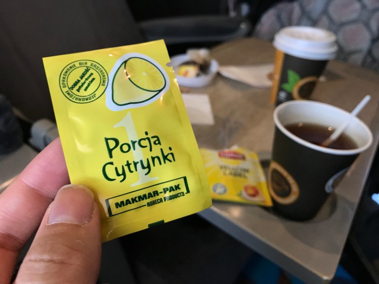 Ten minutes later, we were offered another free round of coffee, tea, or water. I took the tea. It came with a lemon packet. Thought I should try it.