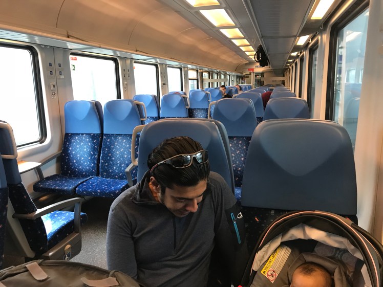 Arthur was awake throughout the whole train ride. He had woken up as we got on the train. He was at first fine being in the car seat but after a while, he got antsy and we took him out and held him instead.