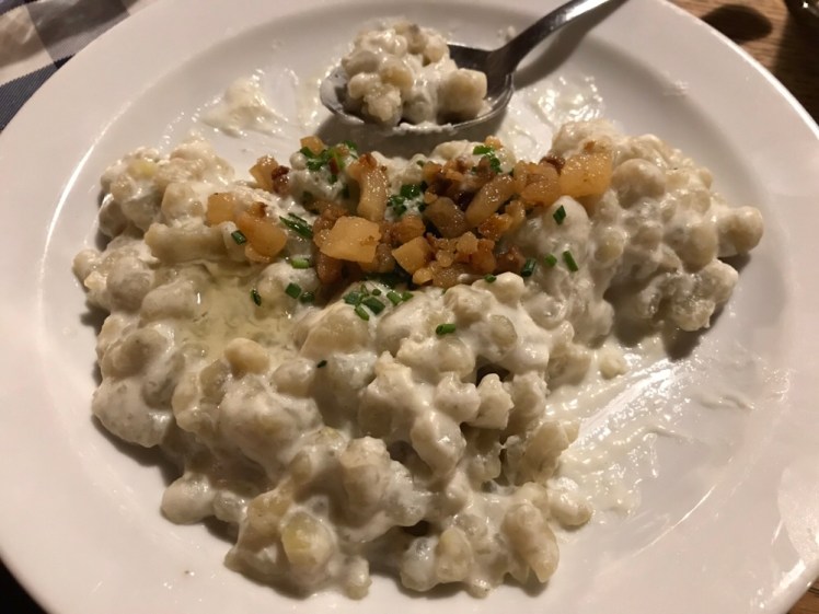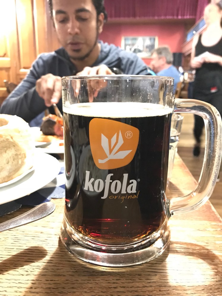 I had the bryndzove halusky (dumplings with sheep cheese) and Kofola, a Czechoslovakian coca-cola. Sean had steak with spicy vegetables and wine. The vegetables were indeed spicy. The wine was cheap. Even though the currency is Euro, the prices here were cheaper than in Vienna.