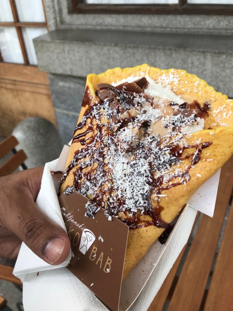 Along the way, we stopped at the colonnade by the river to grab chocolate “kebab” and some smoothies.