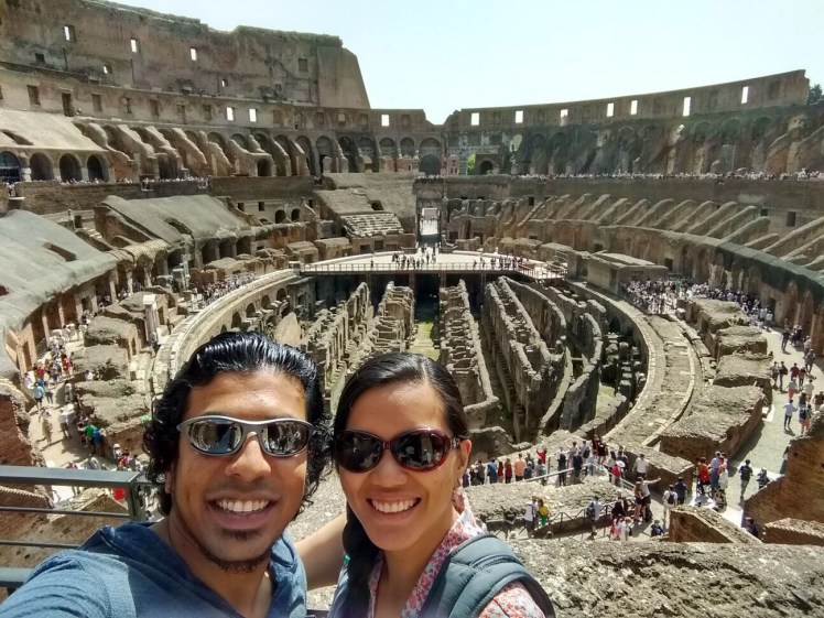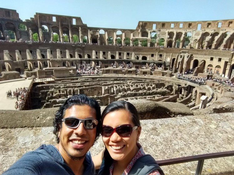 Wednesday, April 25th. Rome. Can you visit the Colosseum with a stroller? Yes. It was quite easy, actually, and we were able to get around fine. The Roman Forum and Palatino? Yes, as well, but the pathway made it difficult for the one who pushed the stroller and the one who rode it. I ended up carrying Arthur on the carrier while Sean handled the stroller. The heat and the sun, and being outdoor made things more challenging as we needed to do more stop to feed Arthur and it was difficult to find a quiet and somewhat dark place to put him to sleep.