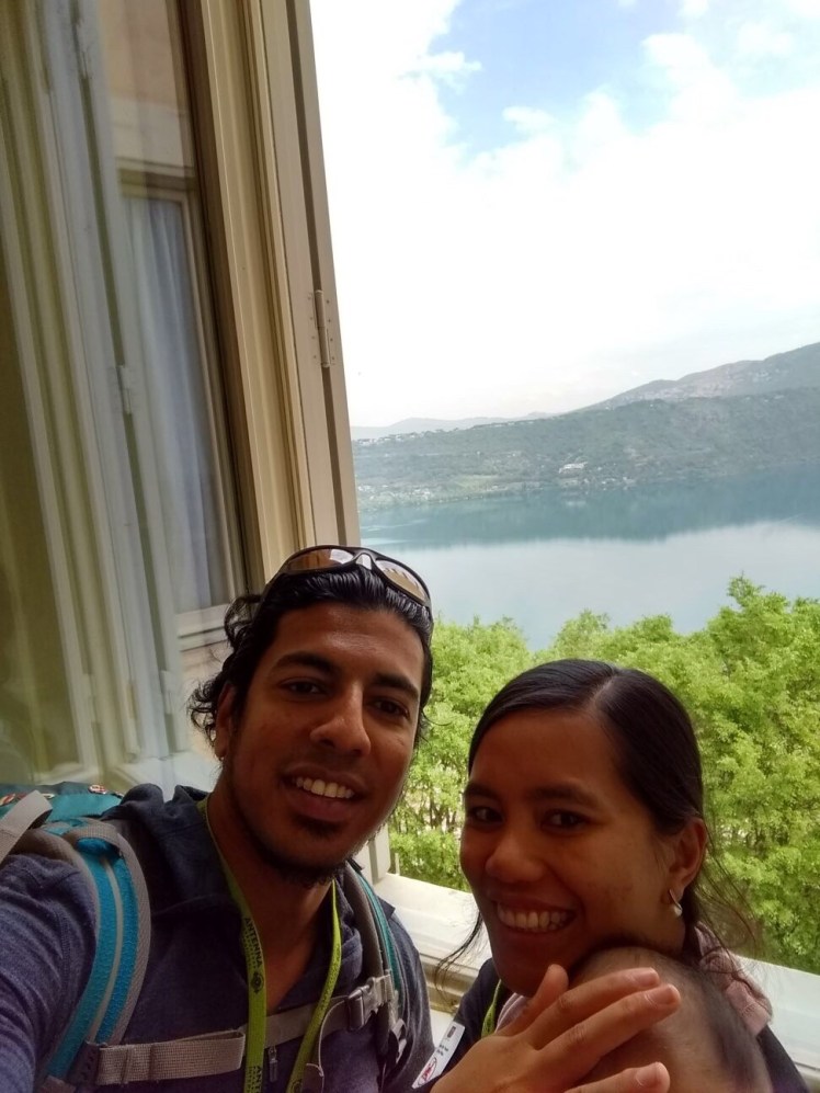 When we arrived, we followed the instruction to get off the train, up the stairs to exit the train station, and into a bus that would transfer us to the pontifical apartment. Having a stroller was a challenge, and having a baby who was moody because of his lack of sleep was definitely difficult.