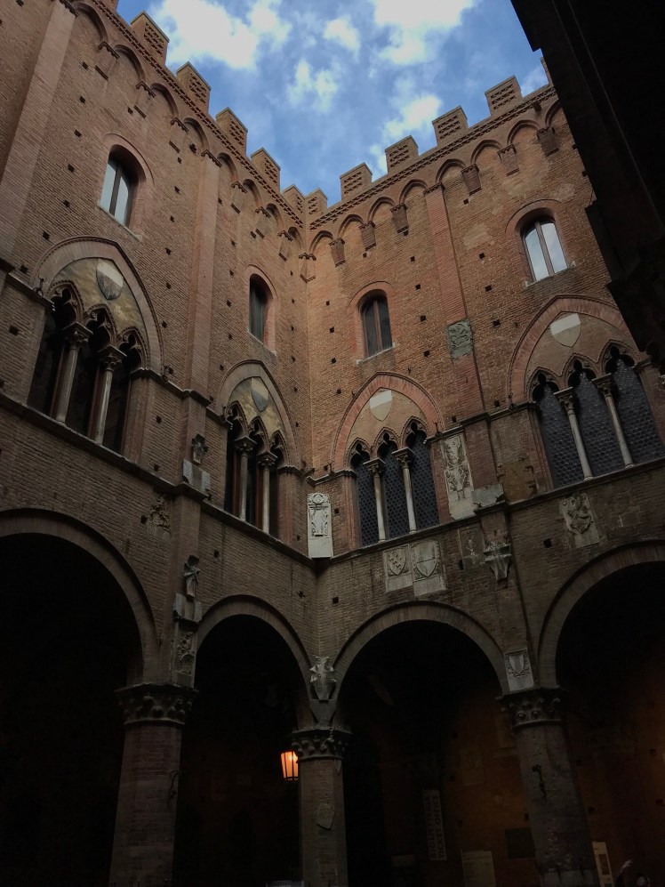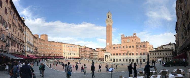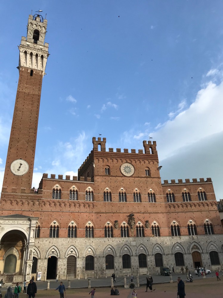 And as we turned left to the Piazza, the view of the Torre del Mangia and Palazzo Pubblico was extraordinary. I didn’t realize the Piazza was in a semicircle shape like an amphitheater. It was such a huge open space. It felt quite freeing. It was a delightful surprise. I know I said that already, but it’s true.