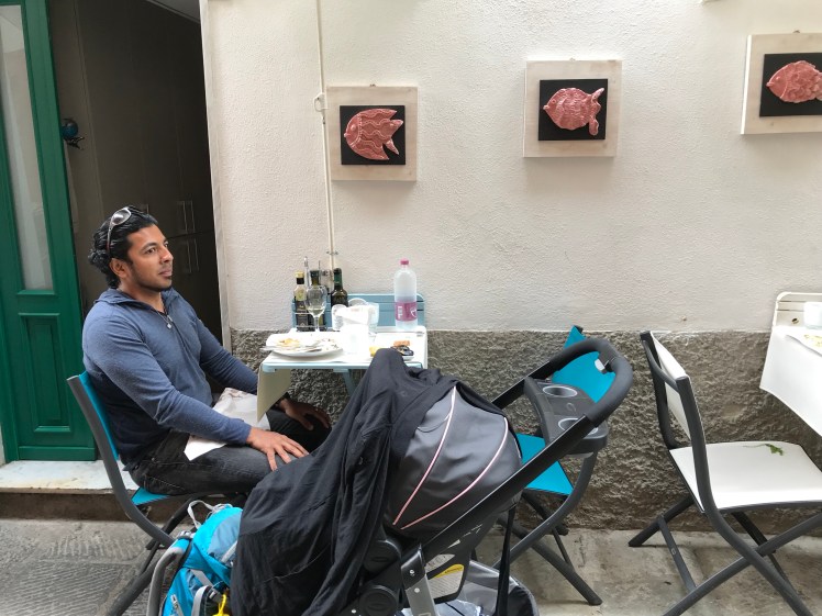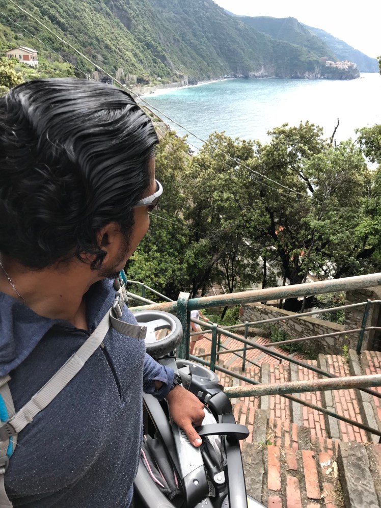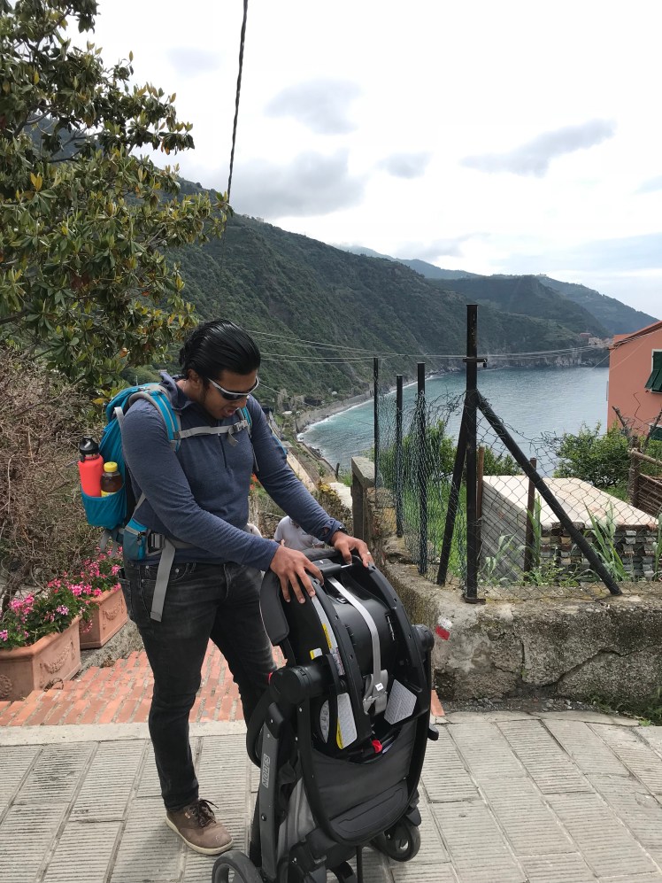 After going up several set of stairs to get to a better viewpoint, we decided to head back down to give him a nap. We found that this place wasn’t as picturesque as the Vernazza. Perhaps we didn’t go to the right place, and with the stroller, it wouldn’t be as easy.