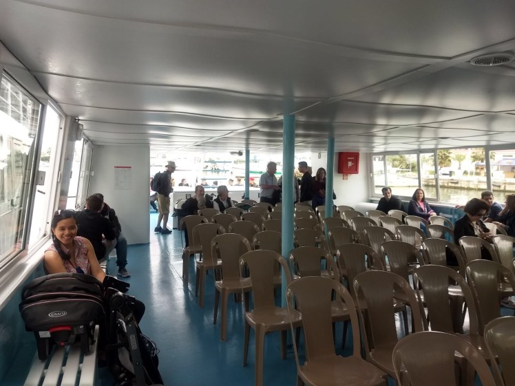 Getting on the boat was quite easy. I had Arthur in the car seat and Sean carried the frame on board. Getting off the boat was the same thing. Arthur was in the car seat.