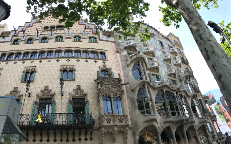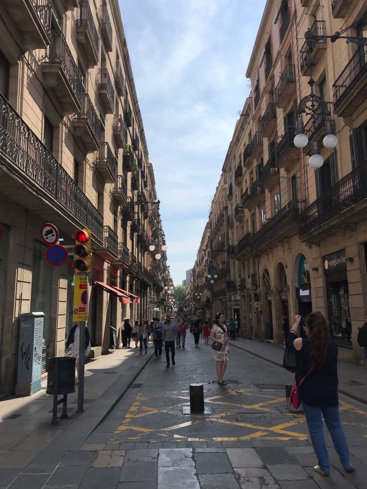 After lunch, we continued our walk. We got to Casa Mila, and we continued walking past the Block of Discord to Plaça de Catalunya to La Rambla.