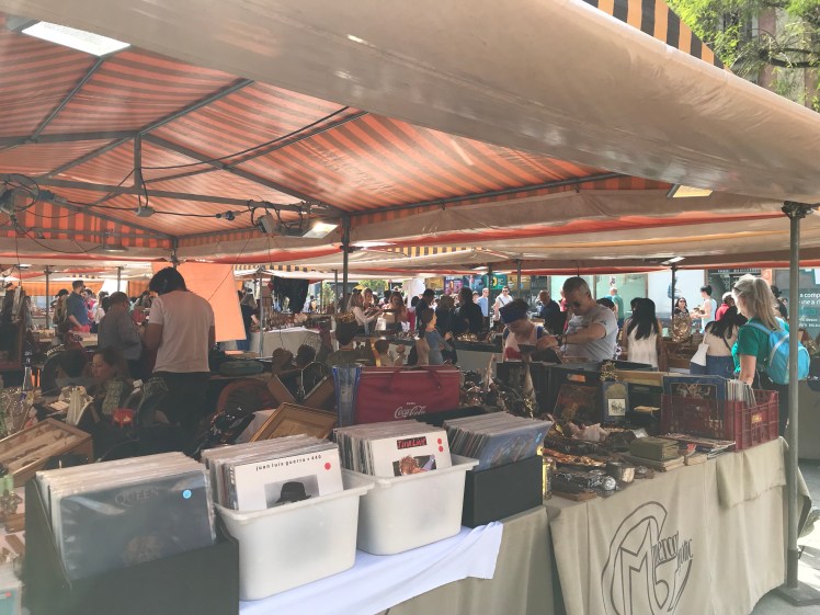 Then, after a couple of blocks down La Rambla, we turned left to head to the Gothic Quarter. We stumbled upon an antique market right in front of Barcelona Cathedral. We spent some time looking at the various collections.