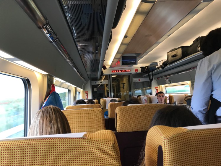 We were able to store our backpacks and the stroller in the luggage compartment at the end of the carriage. When we took Arthur out of the car seat about 15 minutes into the journey, we placed the car seat in between our seats and the seats right behind us as the two rows were facing a different direction.