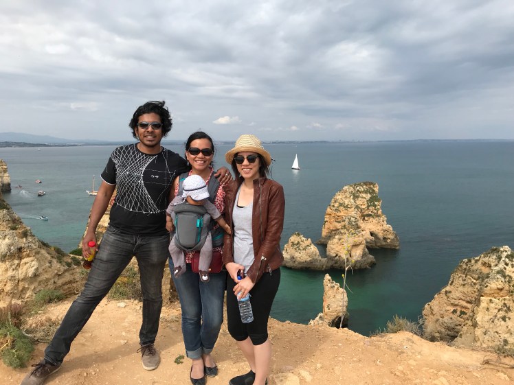 Sean had put Arthur to sleep before we left Faro. Arthur woke up about 30 minutes later, and we stopped at a gas station along the highway to feed and soothe him. I, then, put Arthur back in the car seat, and pretended to be asleep. Somehow, it worked, and Arthur went back to sleep. When we got to Lagos, we debated whether or not we should park in the old town and walk around. We decided to head to Ponta da Piedade instead.