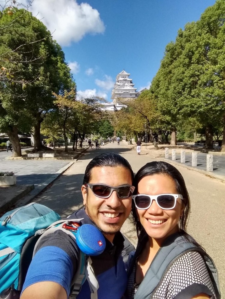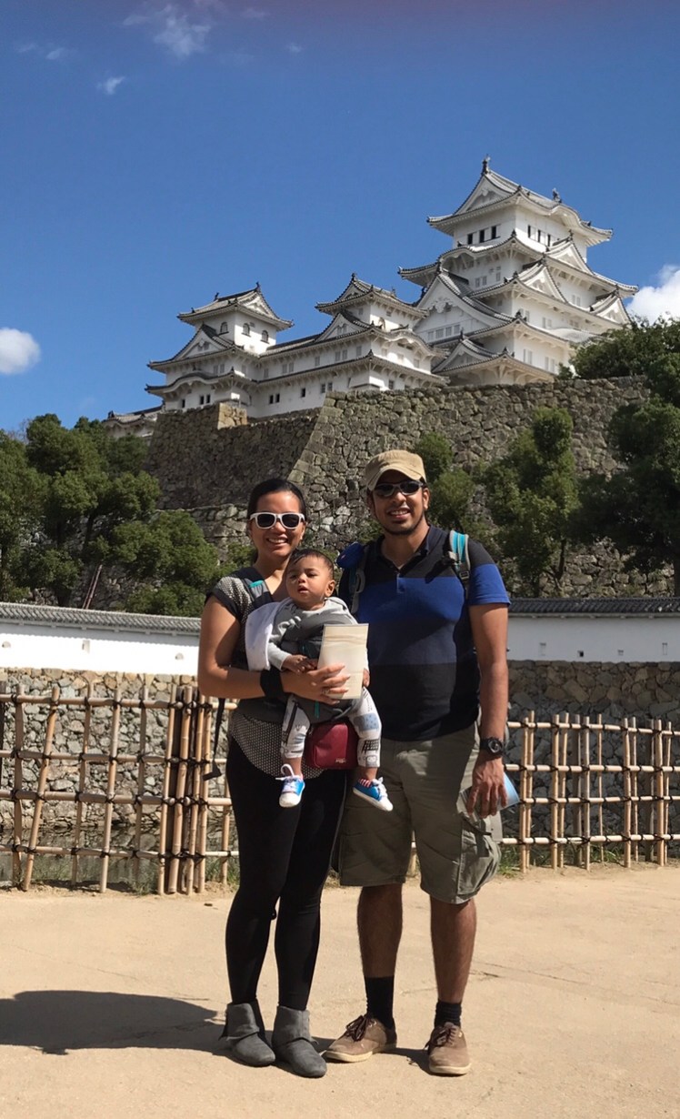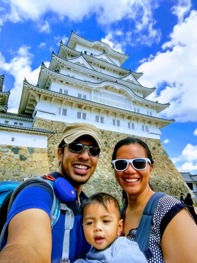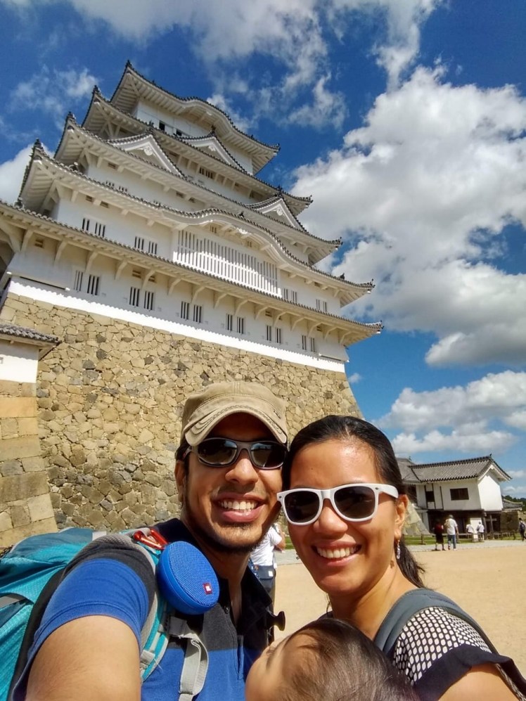 The drive from Kansai Airport to Himeji Castle took longer than we expected. There was a bit of traffic along the way. When we got to the castle, there were already a whole lot of people, but apparently, we got there at the right time. The carpark was still less than 50% full and the weather wasn’t too hot yet. I was, of course, worried that Arthur might get sick again. But so far so good.