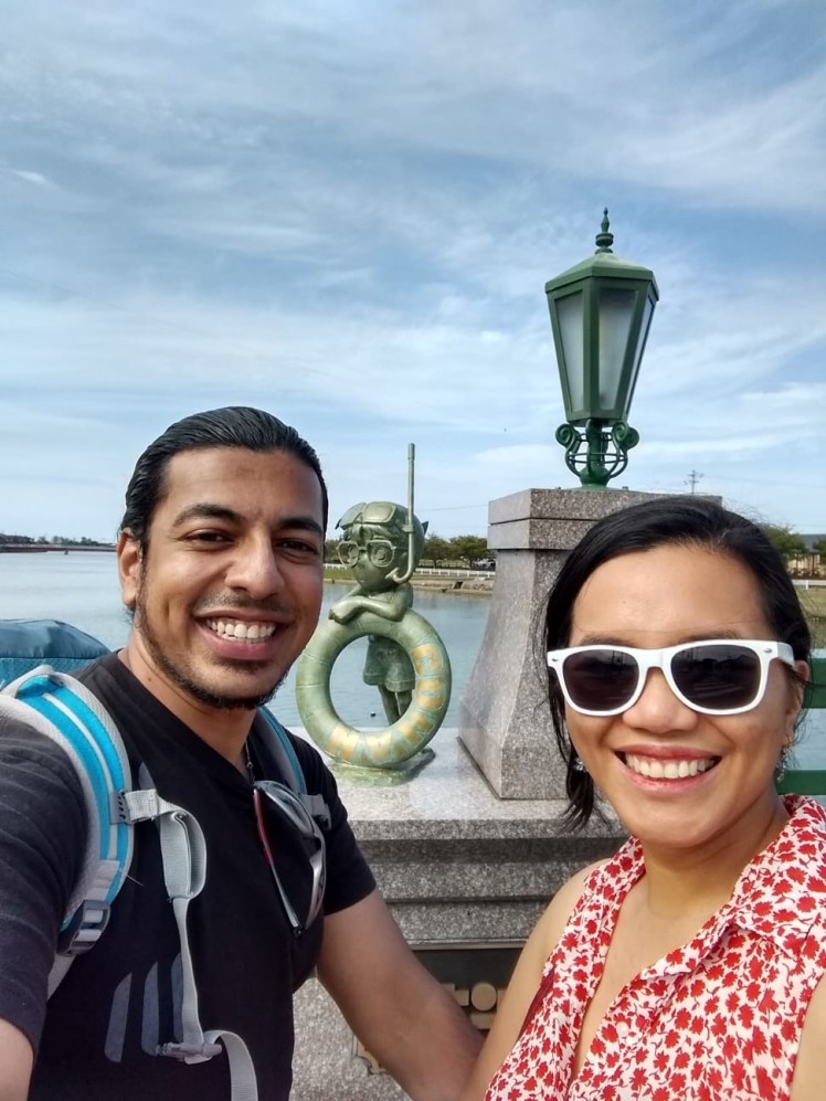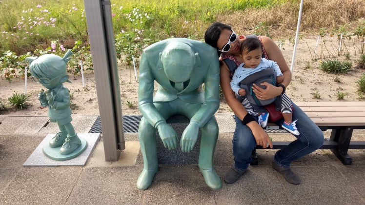 Then we attempted to wander around the souvenir store, but Arthur was getting fussy. So, we walked out of the store and tried to put Arthur to sleep in the patio next to the river. It was so peaceful and quiet. Arthur wasn’t having it. He didn’t want to be rocked nor held. We decided to put him in the stroller, placing him in bassinet mode. He complained for a bit, but he gave in. He was fine being pushed in the stroller. We decided to walk across the river to Conan train station, hoping Arthur would fall asleep.