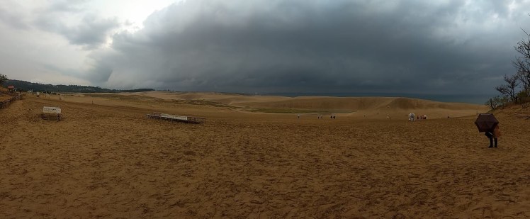 We got up, took our time getting ready, gave Arthur a nap, and once he woke up, we headed towards Tottori Sand Dunes. It was raining. The weather was much better yesterday. Today, everything seemed so gloomy.