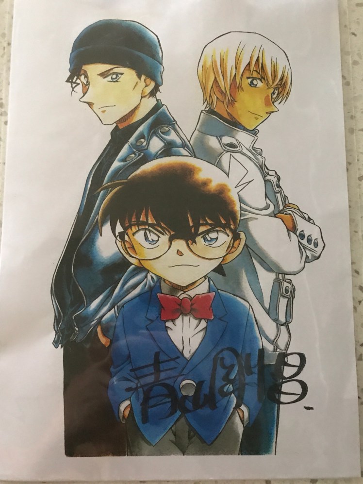 At the gas station, the old man who helped us fill up gas asked in broken English what we were doing there. We told him we really loved Detective Conan. He was surprised but then he asked us to wait as he got something from the store.
