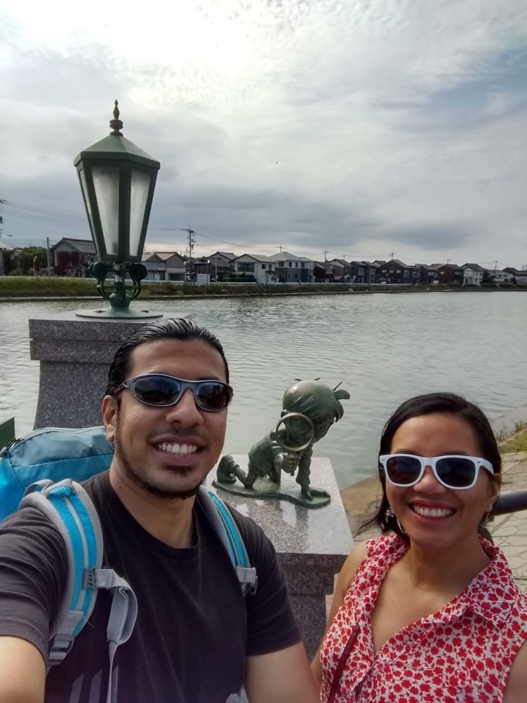 As we crossed the river again, Arthur woke up. So we sat at a nearby bench to feed him. Then we continued on walking and made our way to the Gosho Aoyama Museum where Professor Agasa’s car was parked. Along the way, we also came across Sleeping Kogoro.