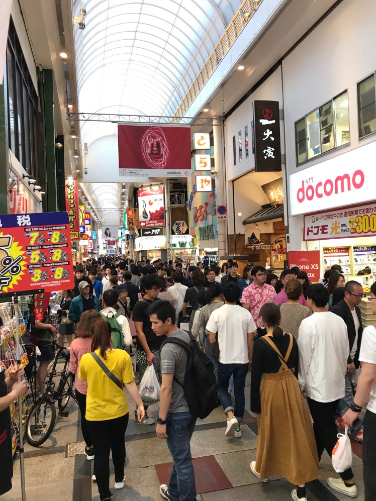 We only had one destination: Dotonbori. Apparently, it was a walking distance away from Namba train station. And it was. The way there was quite exciting. Lots of people, lots of stores, lots of street food.